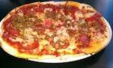 Italian sausage, pepperoni, onions & green peppers baked in pizza, mozzarella cheese & crushed red peppers.